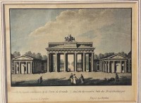 2x Anichtenstiche um 1815, Brandenburger Tor und Schloss Sanssouci , Aquatinta , Blick vom Pariser Platz auf das Brandenburger Tor, ger/Glas, RG ca 26x30 cm
