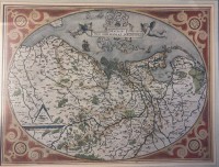 Abraham ORTELIUS (1527-1598) "Descriptio Germaniae inferioris" handcolorierte Landkarte, 38,3 x 51 cm, ger/Glas, 55x67 cm