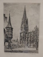 Friedrich GÖRTITZ (1890-1973), Ansicht Freiburg, orig. Radierung, ger./Glas, RG 41,35 x 31cm