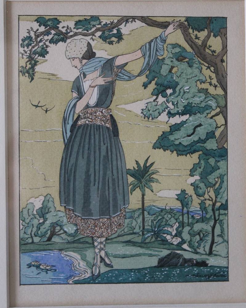 2 Jugendstil-Modestiche um 1920, ger/Glas, RG 33x27 cm [1]