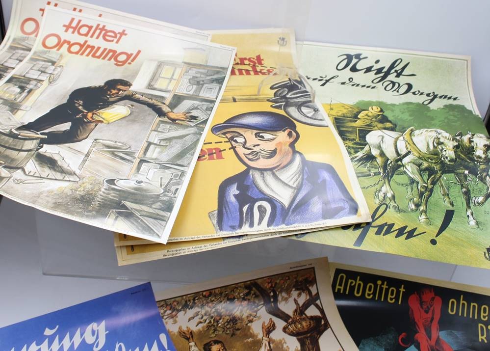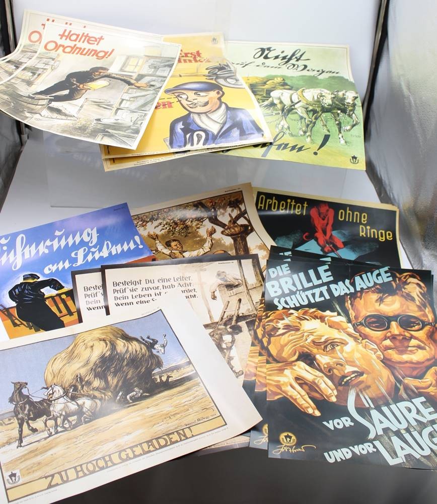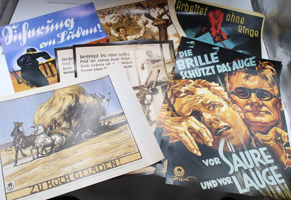 29 Plakate zur Unfallverhütung, 70er Jahre, 9 verschieden Themen, je ca. 30 x 42cm