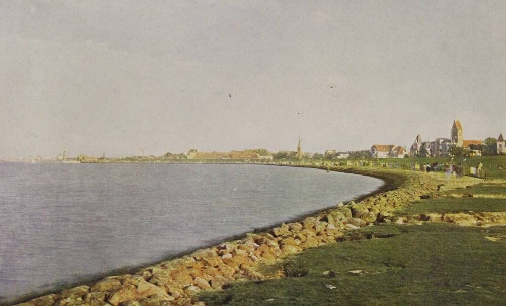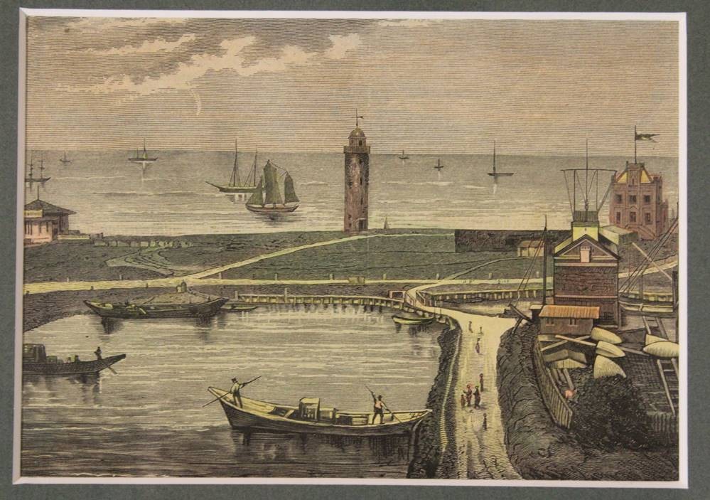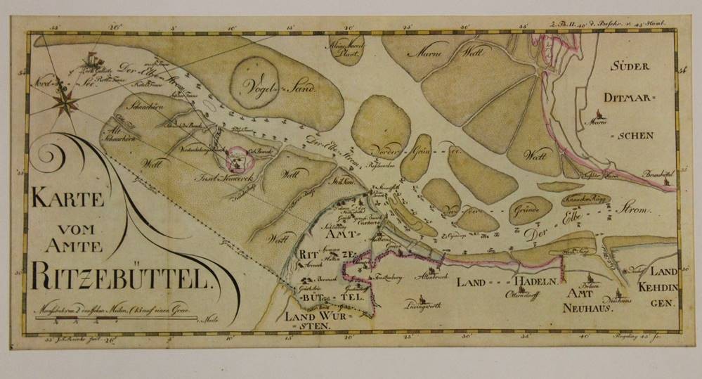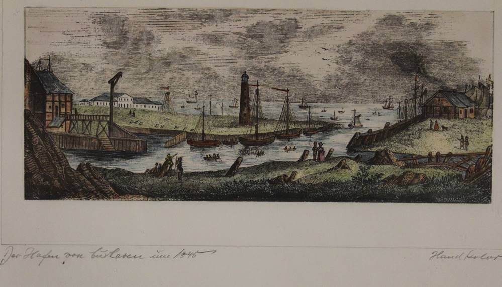 2x alte Stiche von Cuxhaven, 19. Jhd., sowie 2x div. Drucke, je gerahmt/Glas, RG ca. 22 x 30,5 > 32 x 44cm. [1]