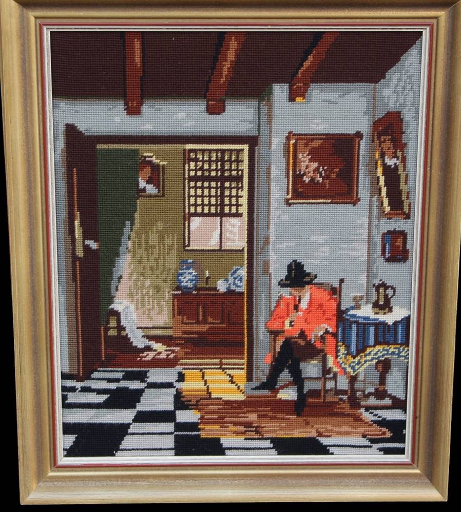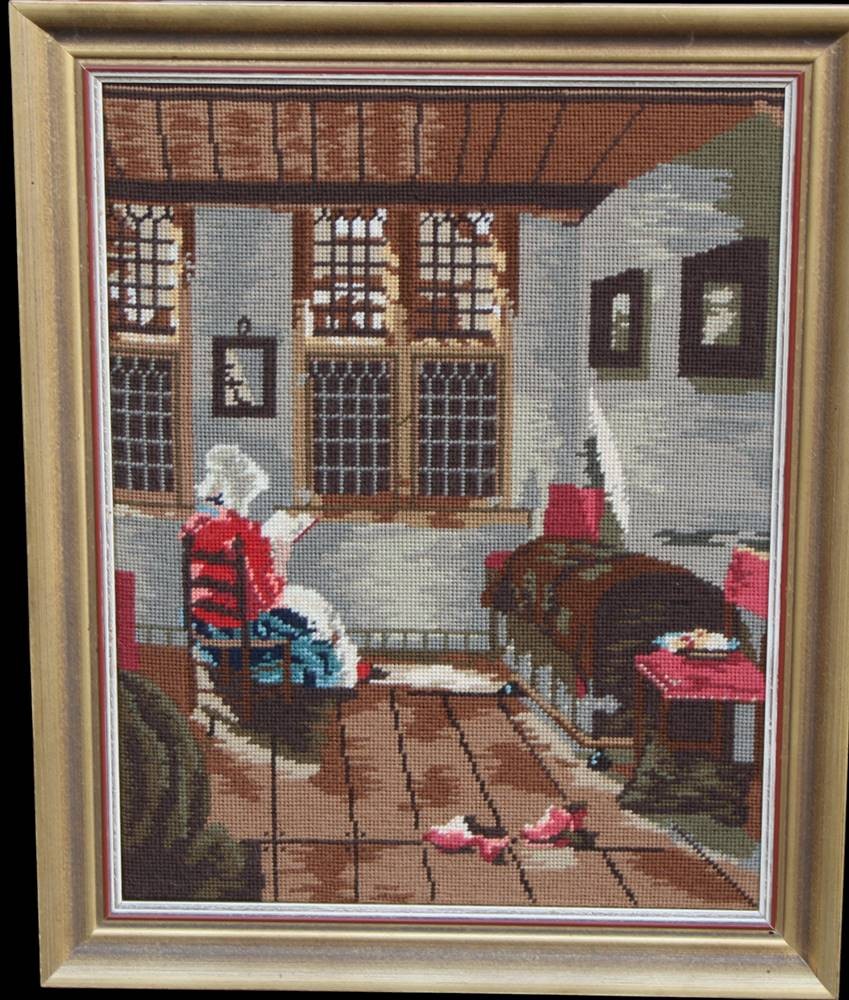 2x gr. Gobelin-Stickbilder, Handarbeit, gerahmt RG 59x50 cm [1]
