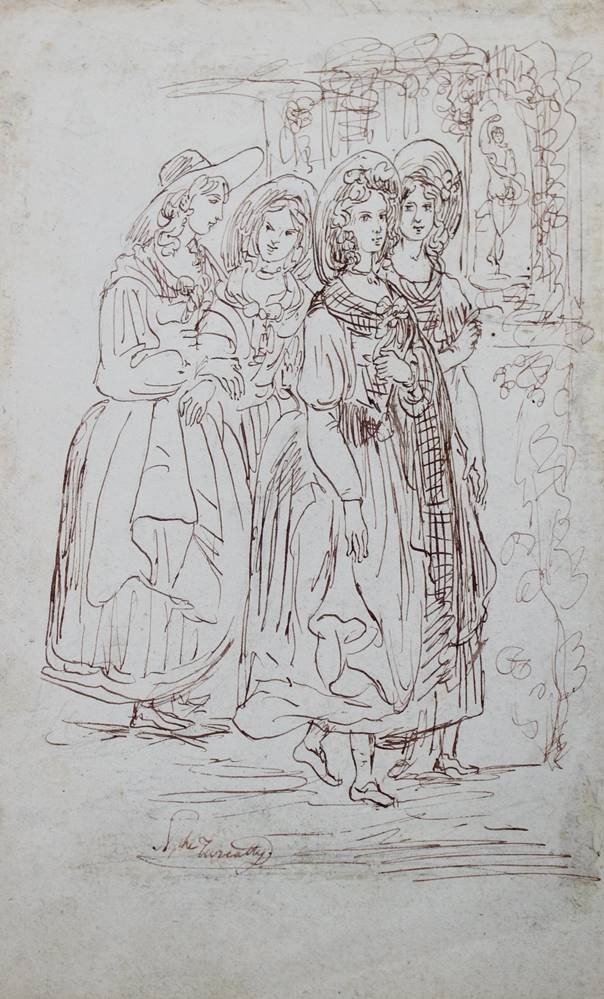 2x Zeichnungen auf einem Blatt, wohl um 1900, signiert Turcatty ?, ungerahmt, BG 19 x 12cm [1]