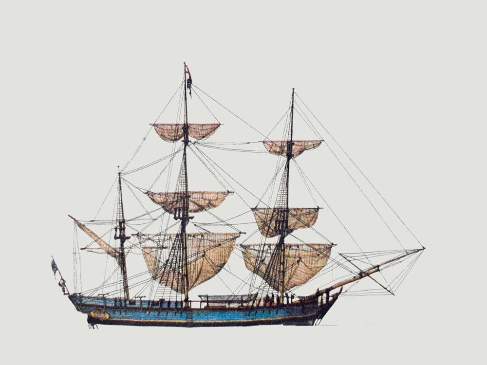 3x antike Segelschiffe, einzeln gerahmt/Glas, je 20x25 cm, Lithographien [1]