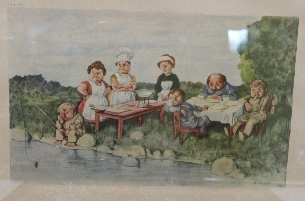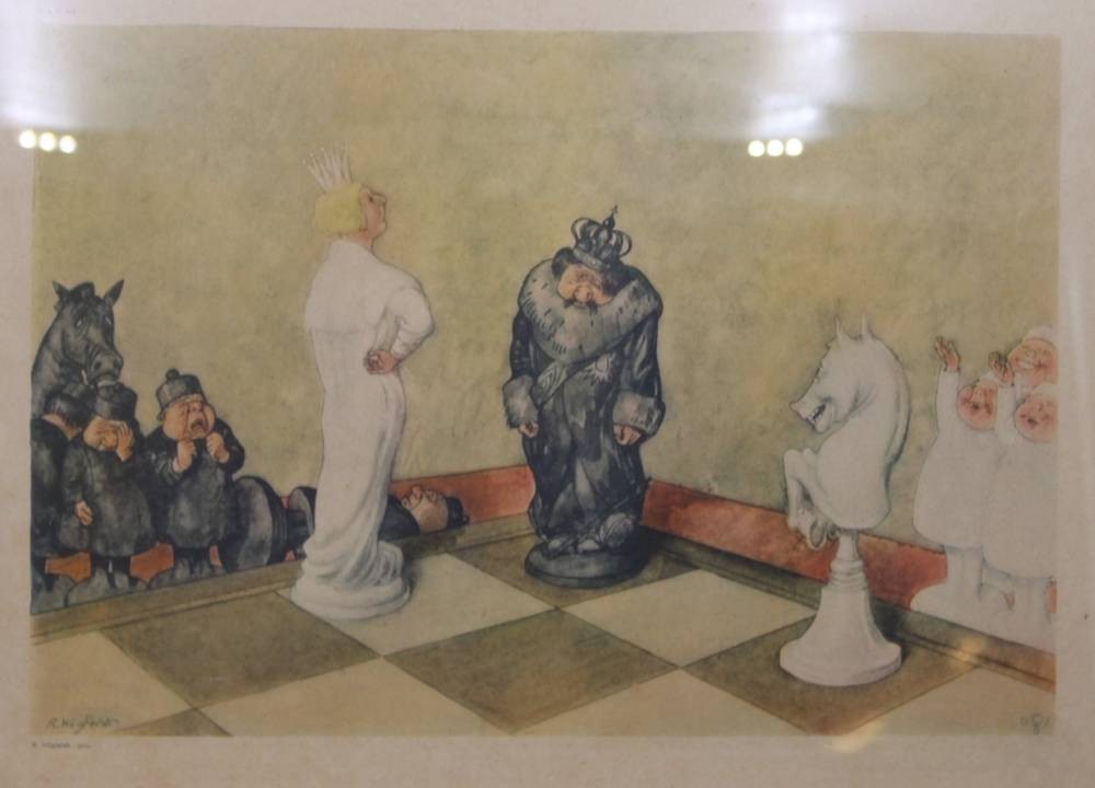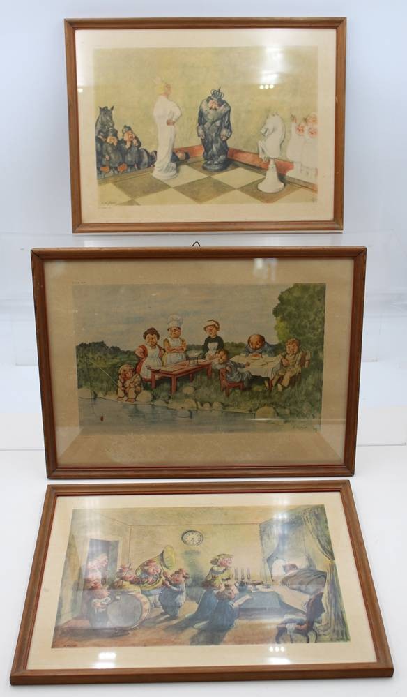 3x gerahmte Karikatur-Grafiken, Robert Högfeldt, je gerahmt/Glas, RG 30,5 x 41cm [1]