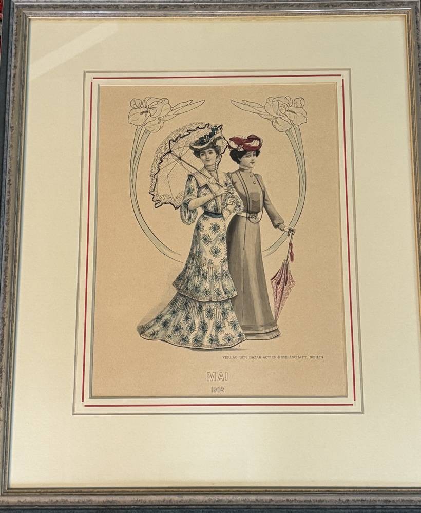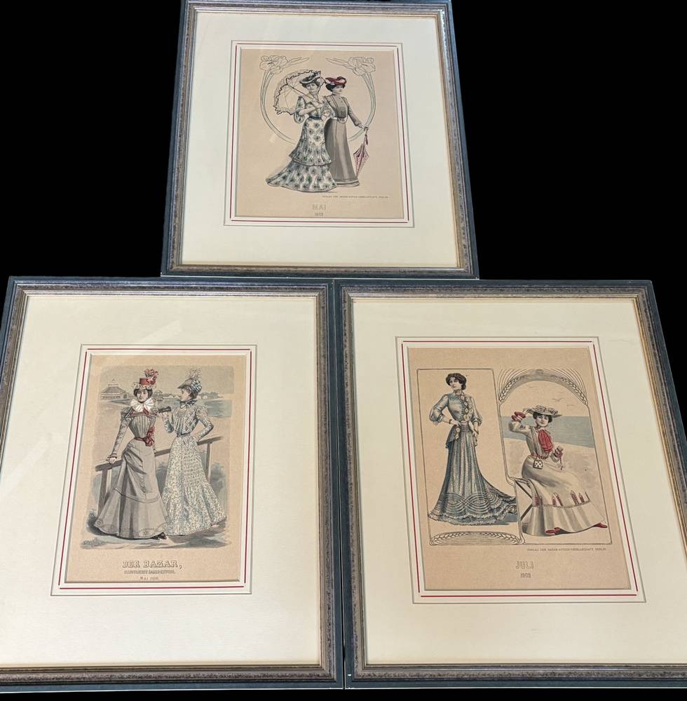 3x grosse Modestiche, um 1900, gut ger/Glas, je 52x43cm