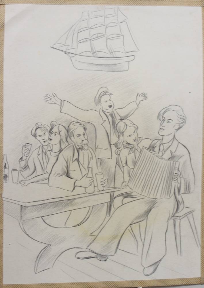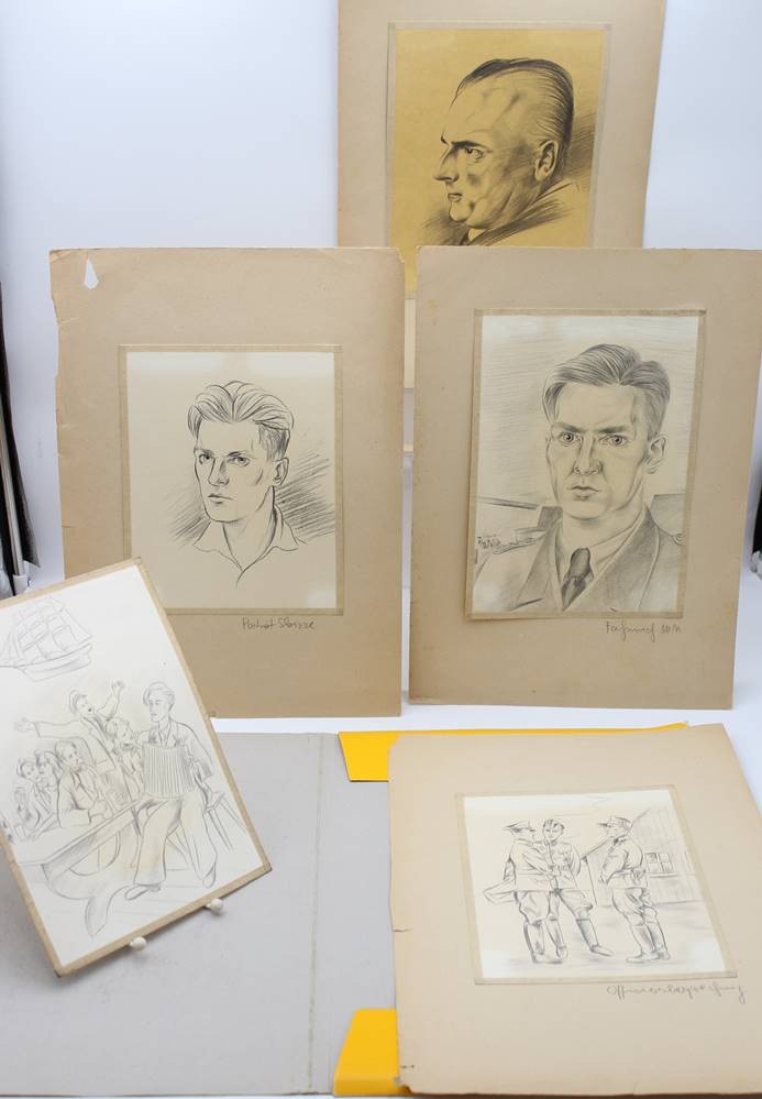 5x div. Bleistiftzeichnungen, 30/40er Jahre, je ungerahmt, auf Pappe, ca. 43 x 31,5cm [1]