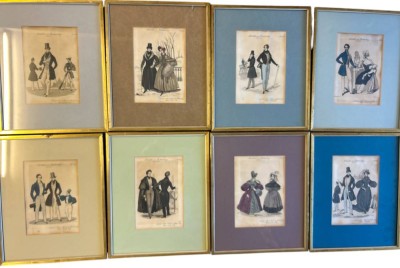 8x Modebilder zur Theaterzeitung , um 1840, colorierte Stiche-Zu haben in Wien, im Bureau der Theaterzeitung, Wollzeil No 780, 2.Stock, alle gleich gerahmt/Glas, Blatt ca. 23,5 x 32,5cm, RG 36,5x30 cm [1]