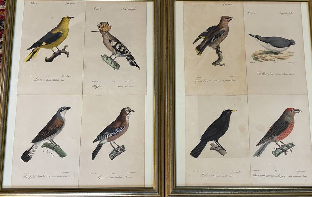 8x Vogelstiche, 19.Jhd., je 4 gerahmt/Glas, 2x 43x34 cm [1]