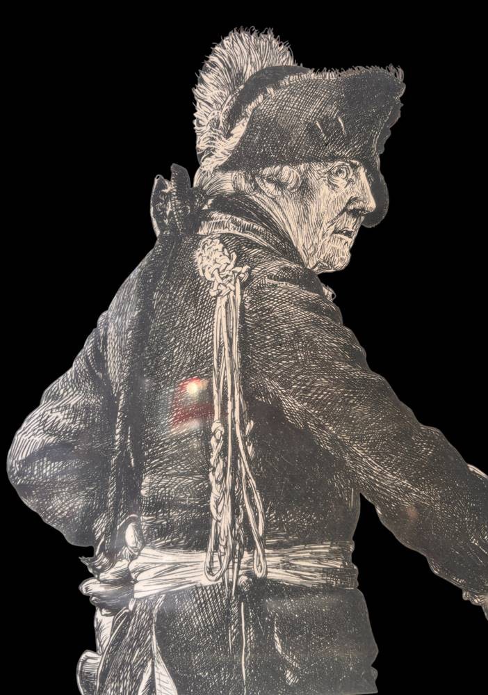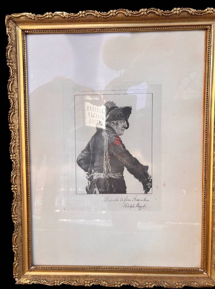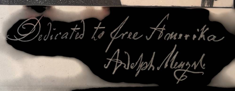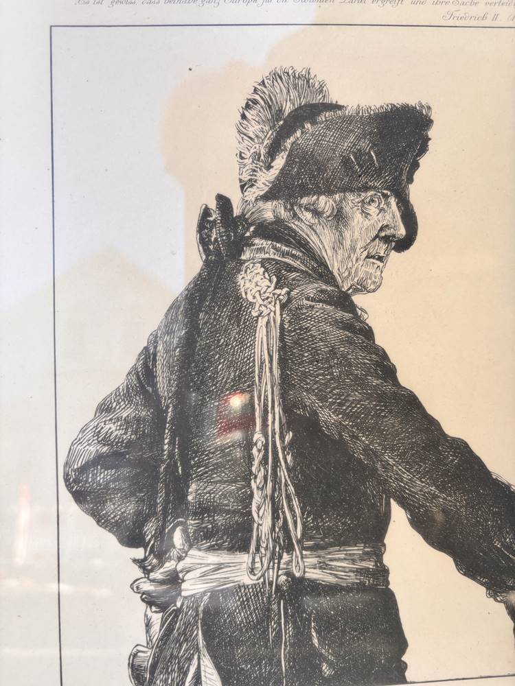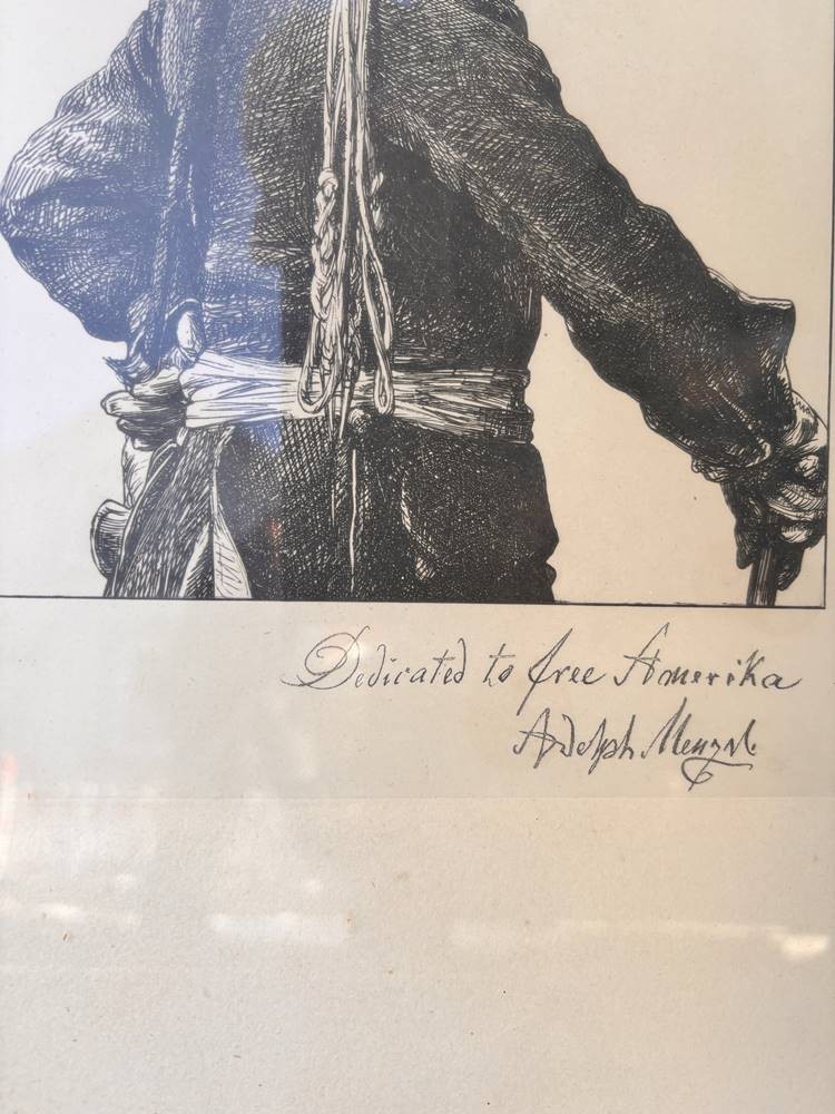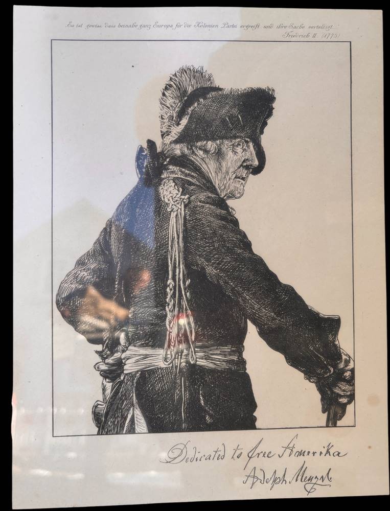 Adolph von Menzel (Breslau 1815-1905 Berlin) Bildnis Friedrich des Großen, Heliogravure, in der Platte bezeichnet und signiert "Dedicated to free Amerika " 28 x 21 cm (Platte), 40 x 30 cm (Blattgröße) ger/Glas [1]