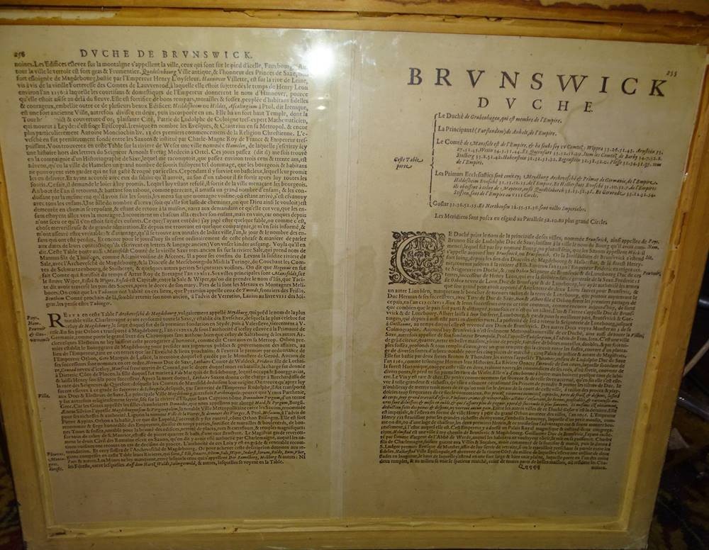alte colorierte Landkarte "Brunswyck",um 1770, rückseitig ebenfalls verglast mit Beschreibung der Karte, RG 49x57 cm [1]