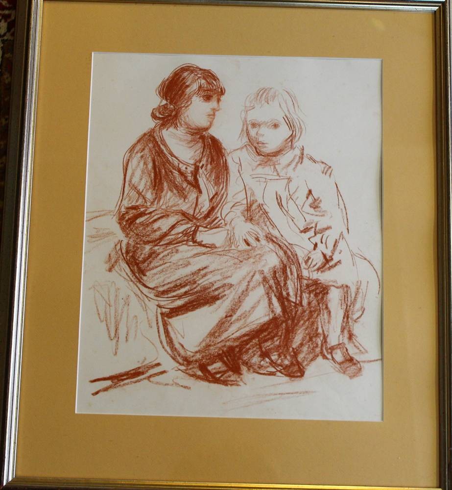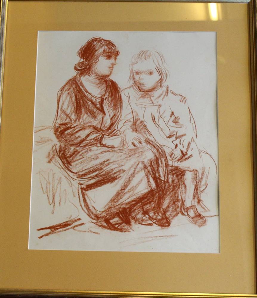 anonym, bzw. unter PP signiert? "Mutter mit Kind" Rötelzeichnung, ger/Glas, RG 60x53 cm [1]