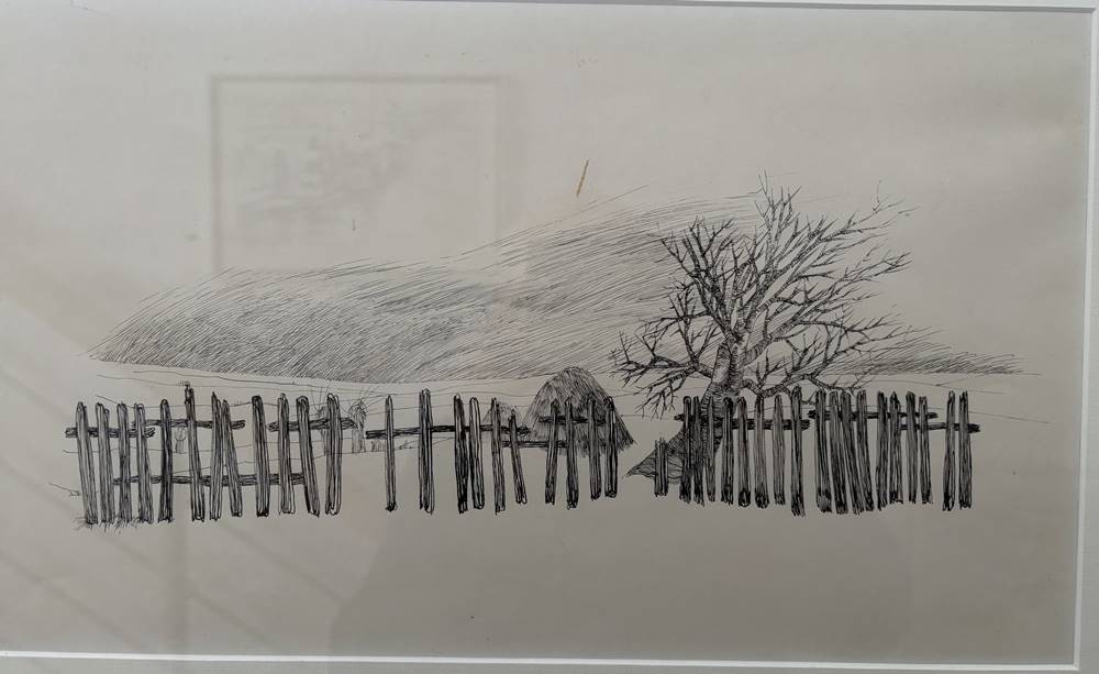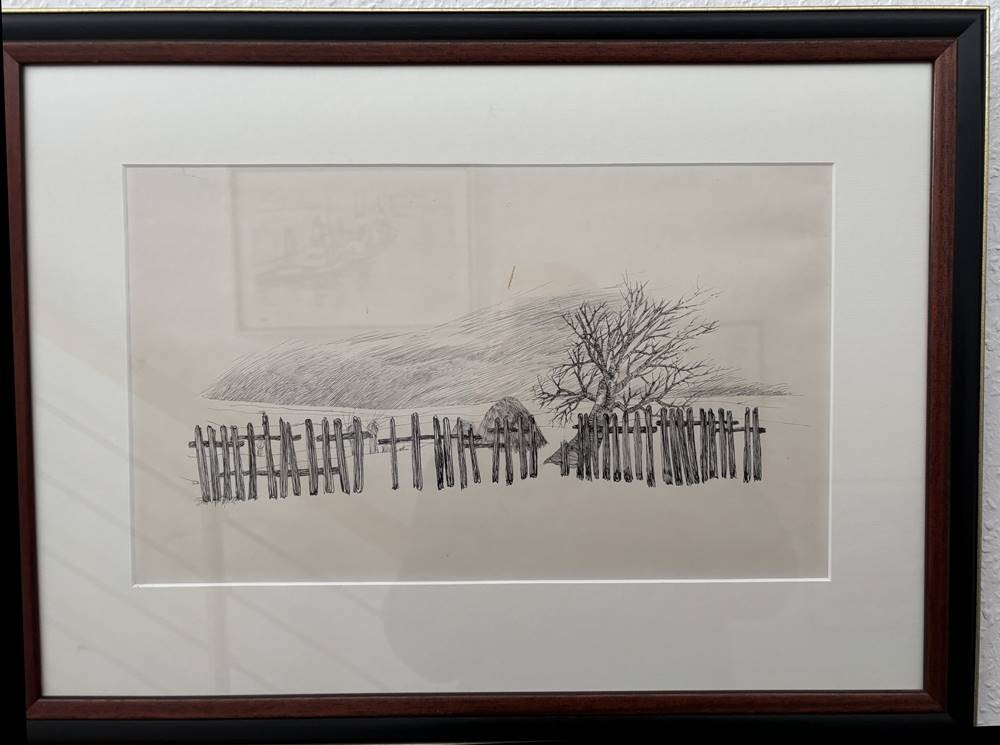 anonyme gr. Radierung "Winterlandschaft", gut ger/Glas, event. unter PP signiert, 42x57 cm [1]