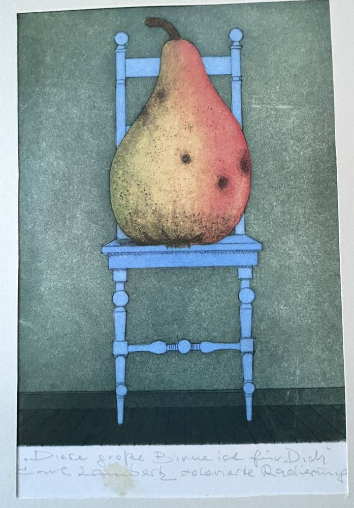Carl LAMBERTZ (1910-1996) "Stilleben" colorierte Radierung mit Widmung, MG ca. 19x15 cm, in PP