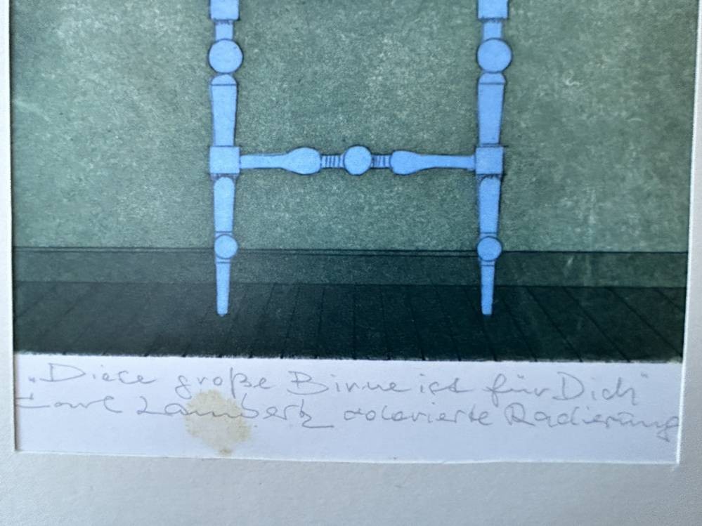 Carl LAMBERTZ (1910-1996) "Stilleben" colorierte Radierung mit Widmung, MG ca. 19x15 cm, in PP [1]
