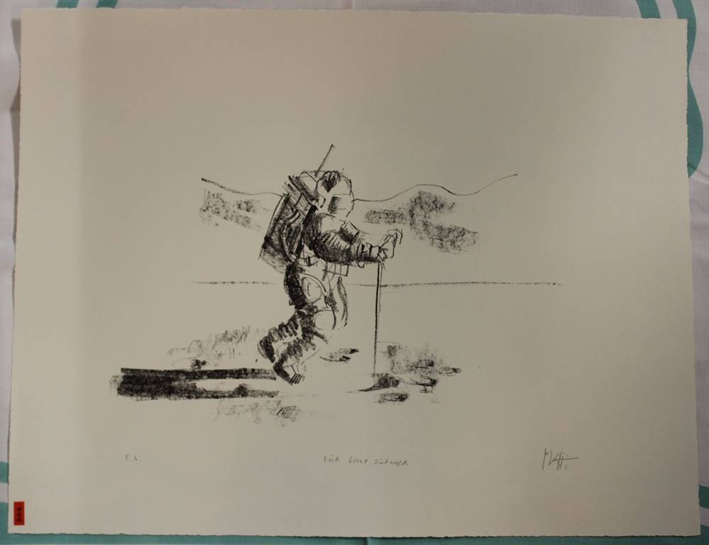 Celestino PIATTI (1922-2007), Astronaut, Lithographie, signiert, E.A., Widmung "Für Lilly Zürcher", ungerahmt, BG 50,5 x 65,5cm. [1]