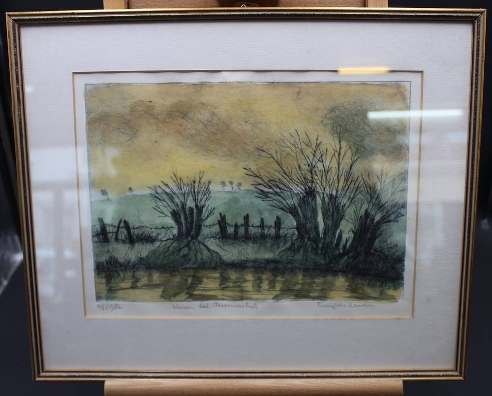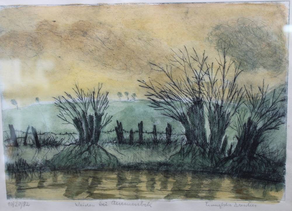 colorierte Radierung, Franziska DRESCHER (1916-1991), Weiden bei Ammersbek, ger./Glas, 35 x 43cm [1]