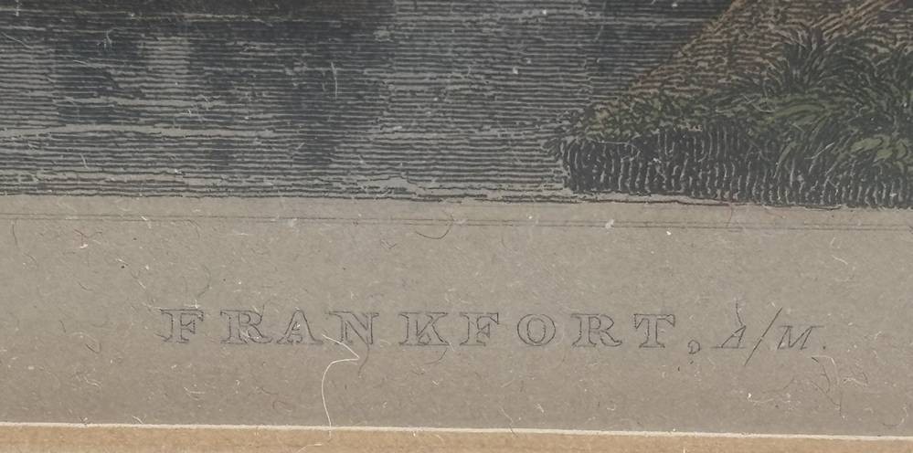colorierter Stahlstich von Lacey nach Tombleson um 1850, ger/Glas, RG 26x30 cm "Frankfurt am Main" [1]
