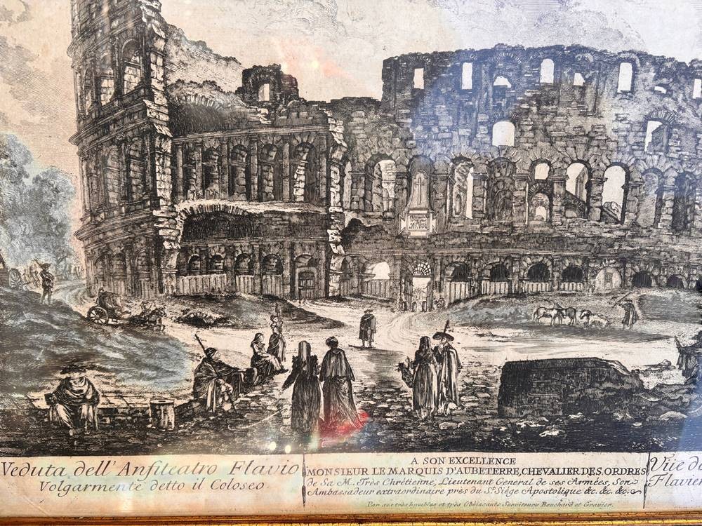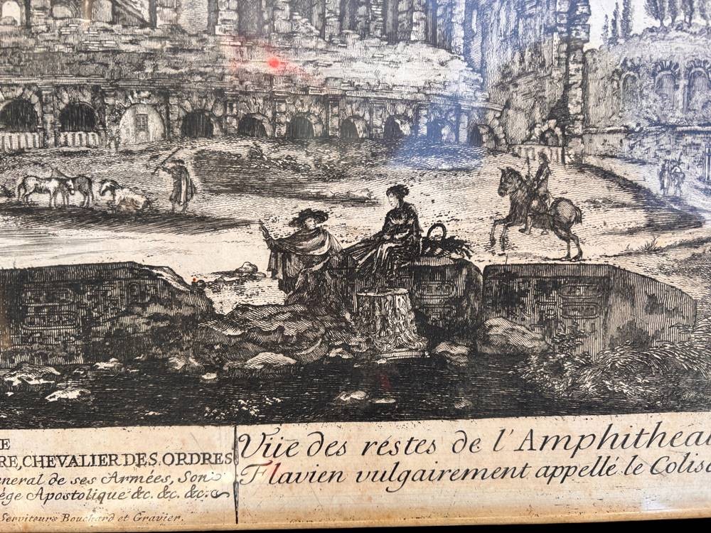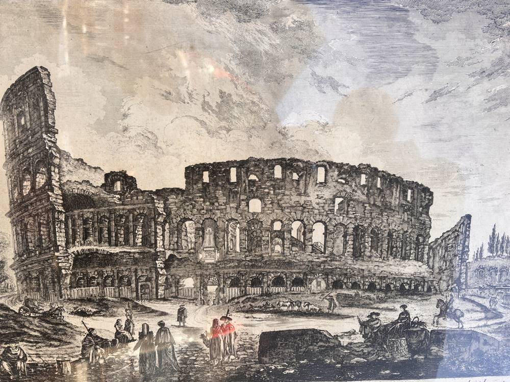 DOMENICO MONTAGU (Italy, ?-1750) gr. Ansichtenstich, das Colosseum in Rom um 1770,BG ca. 40x54 cm, ger/Glas, [1]