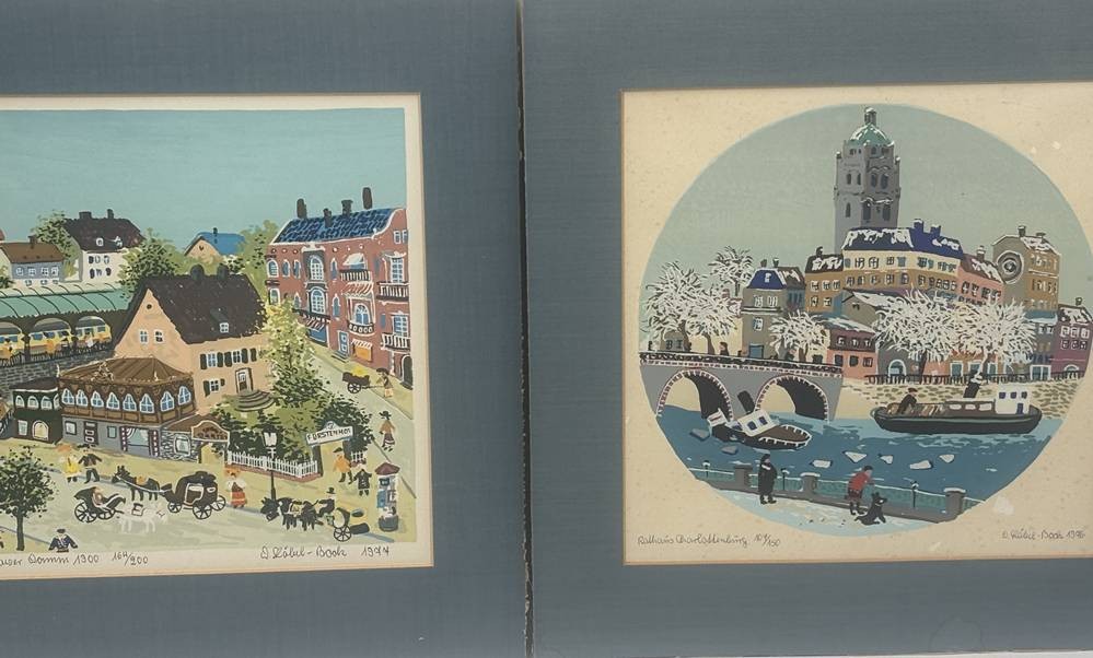 Dorothea LÖBEL-BOCK (1921-2002), 2 Lithografien, naive Berlin Ansichten, 1976/77, in PP, 36x36 cm, nummeriert 164/200 und 107/150 [1]