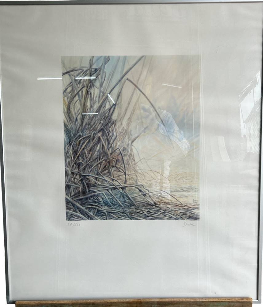 Dudek, 1989 "Ufer-Schilf" Lithografie signiert, Nr. 17/300, ger/Glas, RG 71x61 cm [1]