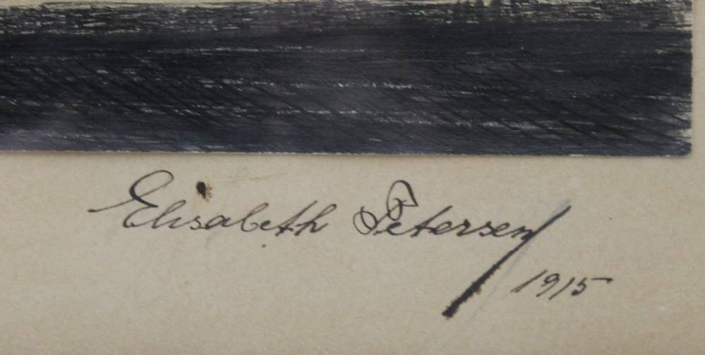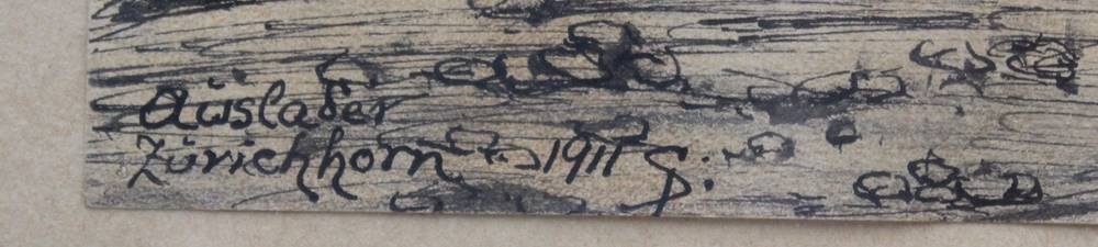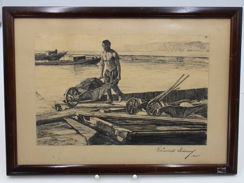 Elisabeth Pertersen 1915, Zeichnung, betitelt "Auslader Zürichhorn 1911", alt gerahmt/Glas, RG 34 x 59cm [1]