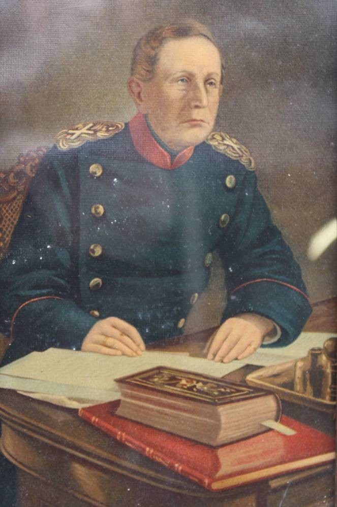 ERINNERUNGSBILD „DER ALTE KURS“, farb. Lithografien Kaiser Wilhelm I., Fürst Bismarck u. GFM Graf Moltke, gerahmt/Glas, RG 38 x 60cm. [1]