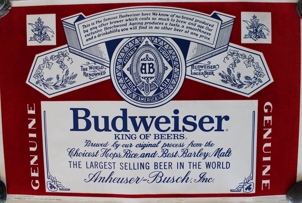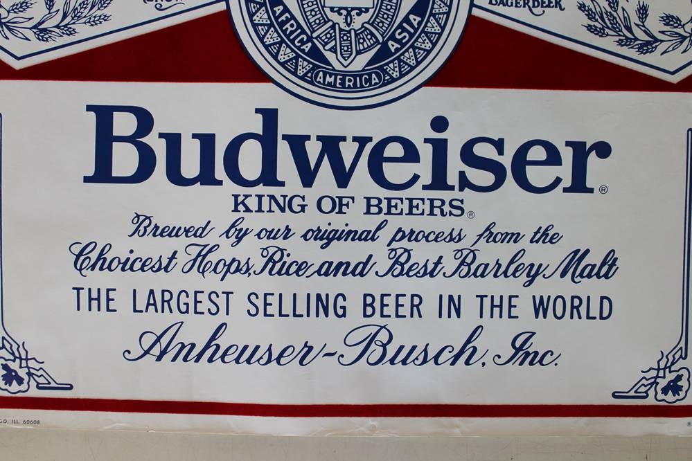 gr. Werbeplakat für Budweiser Bier, älter, teilw. Samt? , ungerahmt, BG ca. 58,5 x 89cm [1]