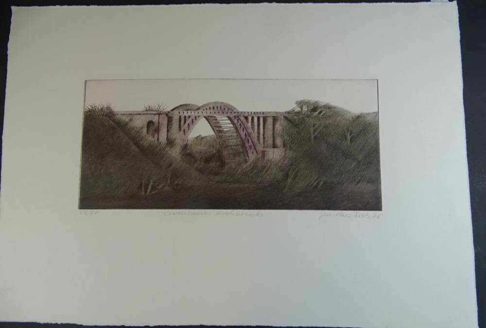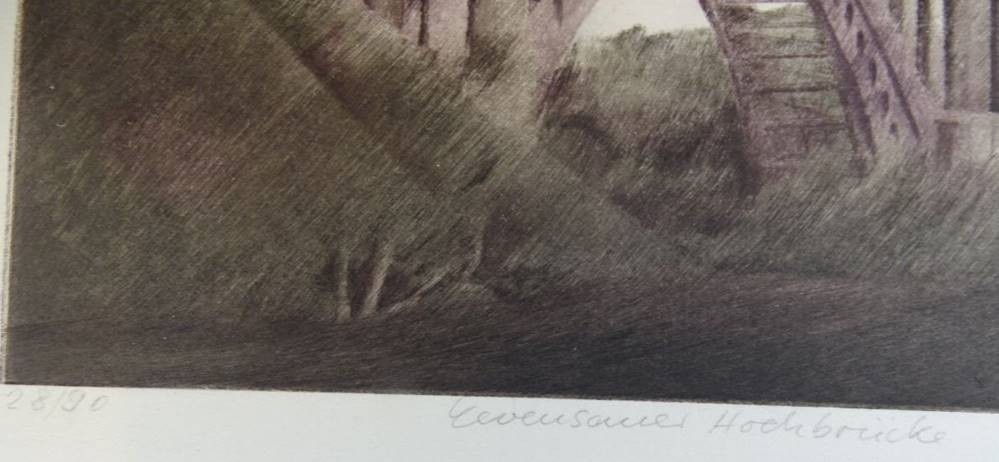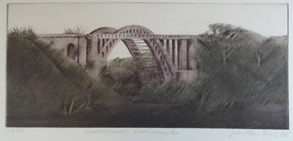 Gunther FRITZ (1938) Levensauer Hochbrücke über den Kaiser-Wilhelm-Kanal, orig. Radierung, 28/90,MG 12x27 cm, BG 30x42 cm [1]