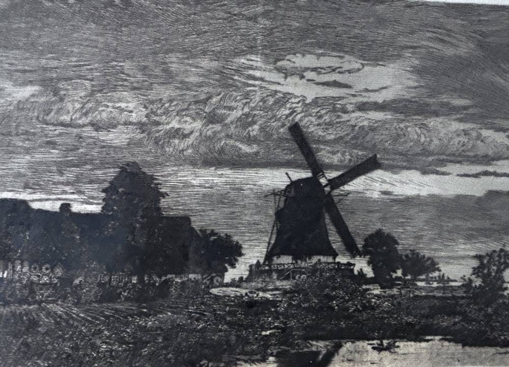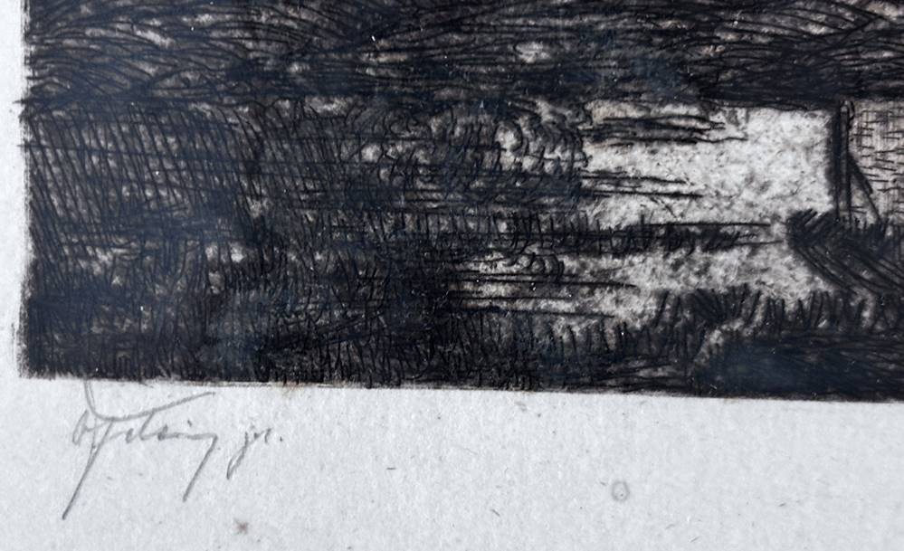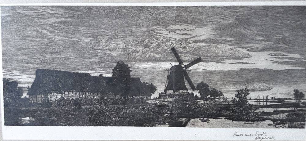 Hans am ENDE (1864-1918), grosse Radierung "Dämmerstunde" handsigniert, ger/Glas, RG 41x76 cm [1]