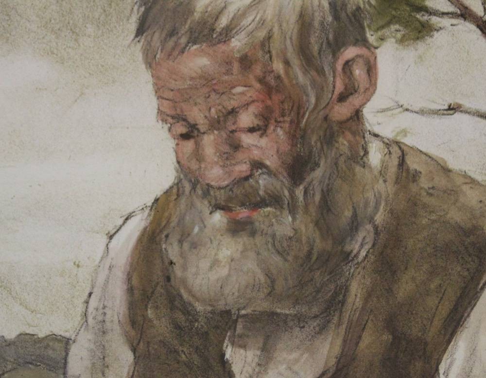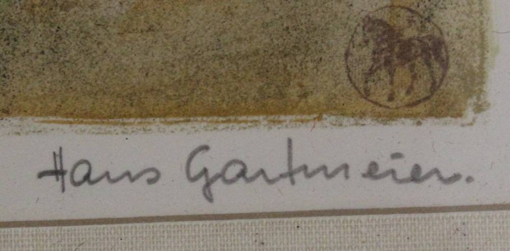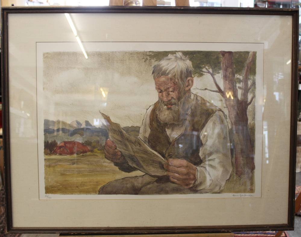 Hans GARTMEIER (1910-1986) "Zeitungsleser" grosse Farblithografike, Nr. 57/150, ger/Glas, RG 74x94 cm