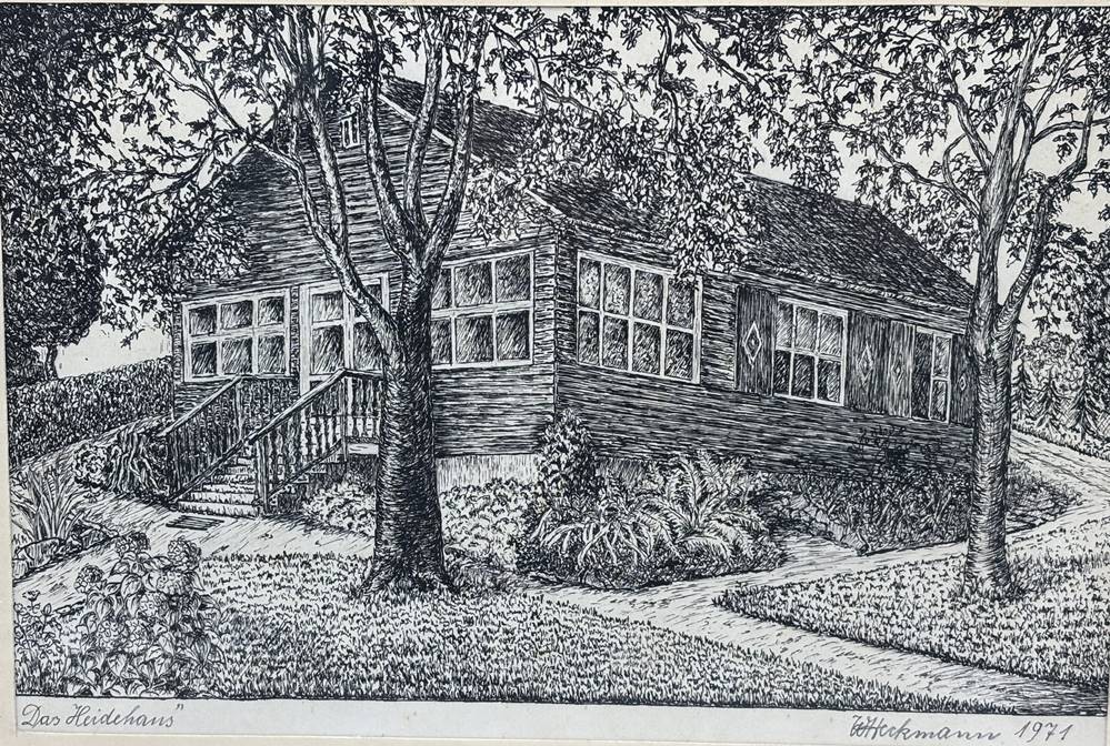 Heckmann "Das Heidehaus" wohl Federzeichnung, gerahmt, RG 32x41 cm [1]