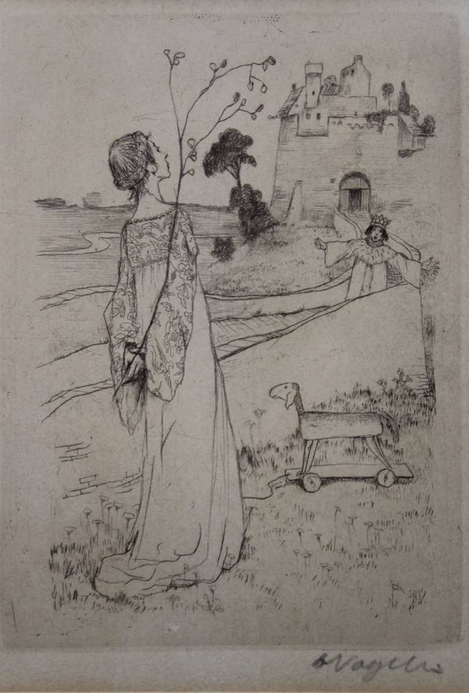Heinrich Vogeler (1872-1942), Radierung, Titel "Die Hirtin", ger./Glas, RG 38 x 18cm [1]