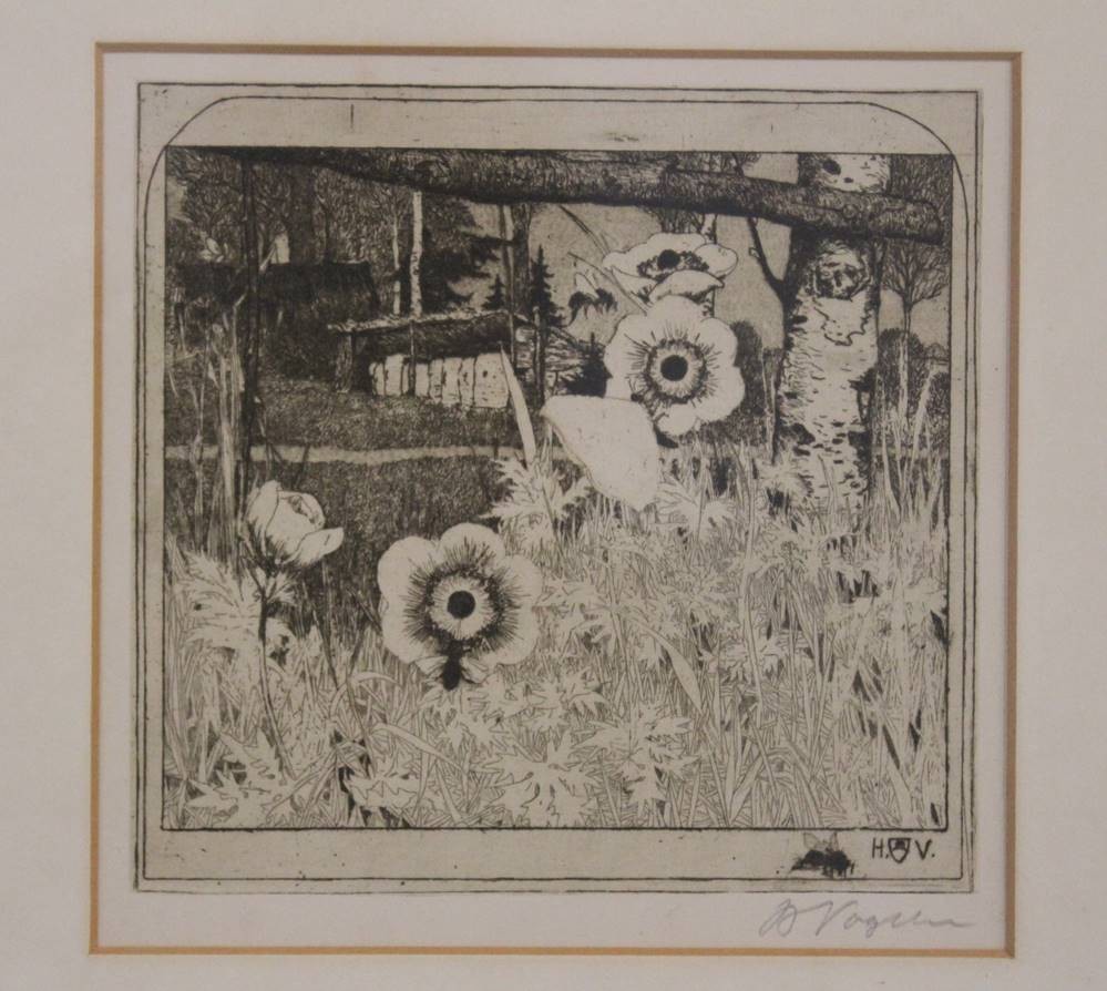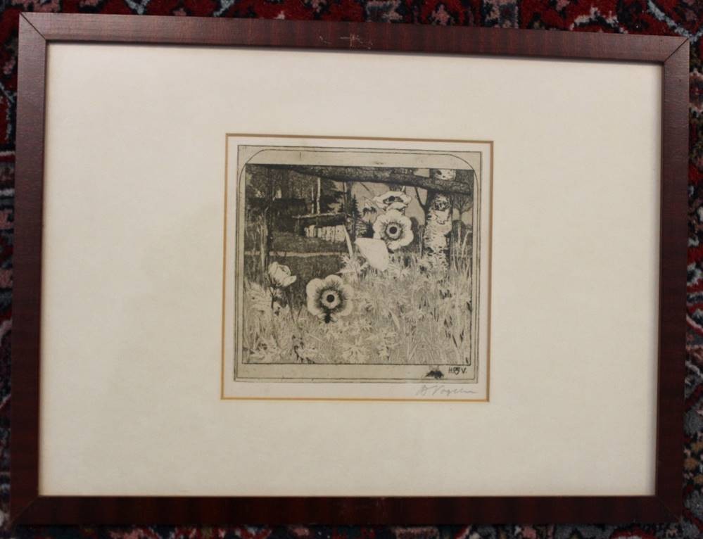 Heinrich Vogeler (1872-1942), Radierung, Titel "Frühlingsblumen", ger./Glas, RG 28 x 38cm [1]
