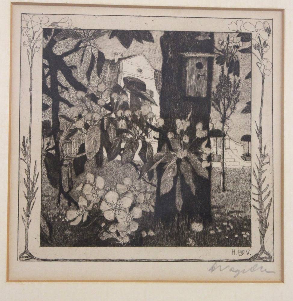 Heinrich Vogeler (1872-1942), Radierung, Titel "Frühlingsmorgen", ger./Glas, RG 28 x 38cm [1]