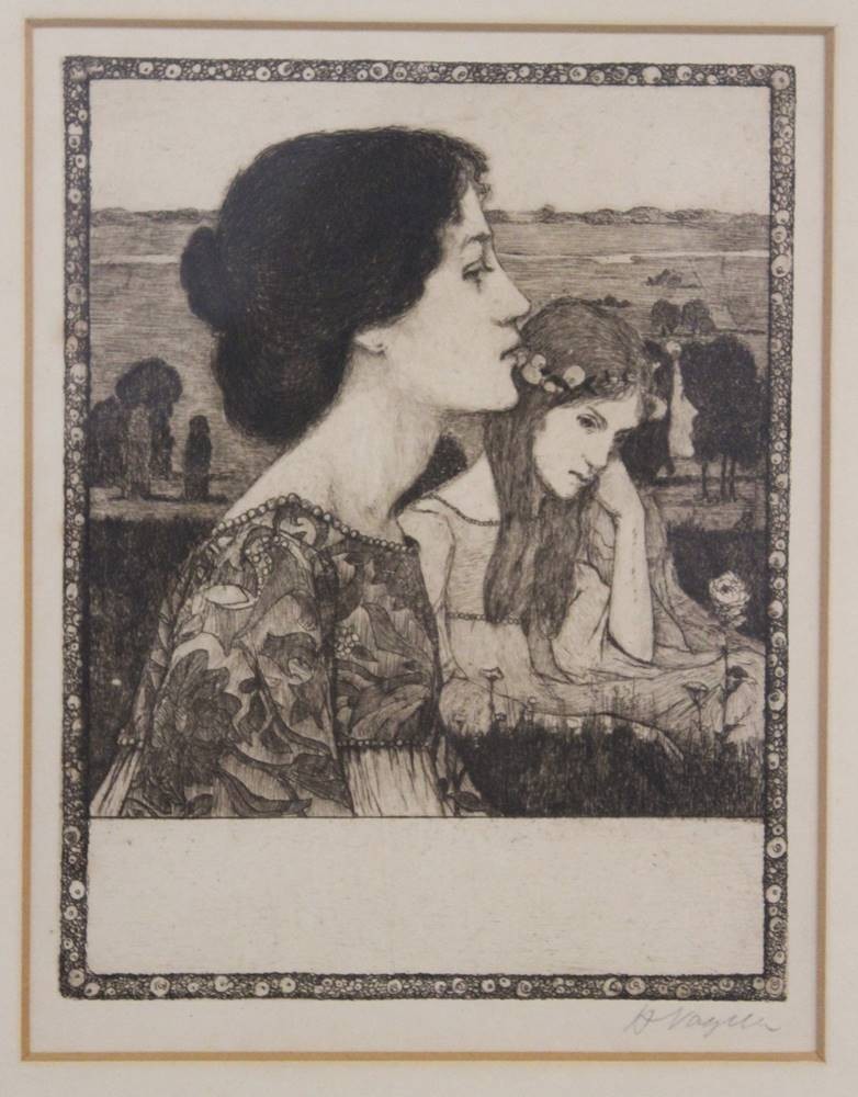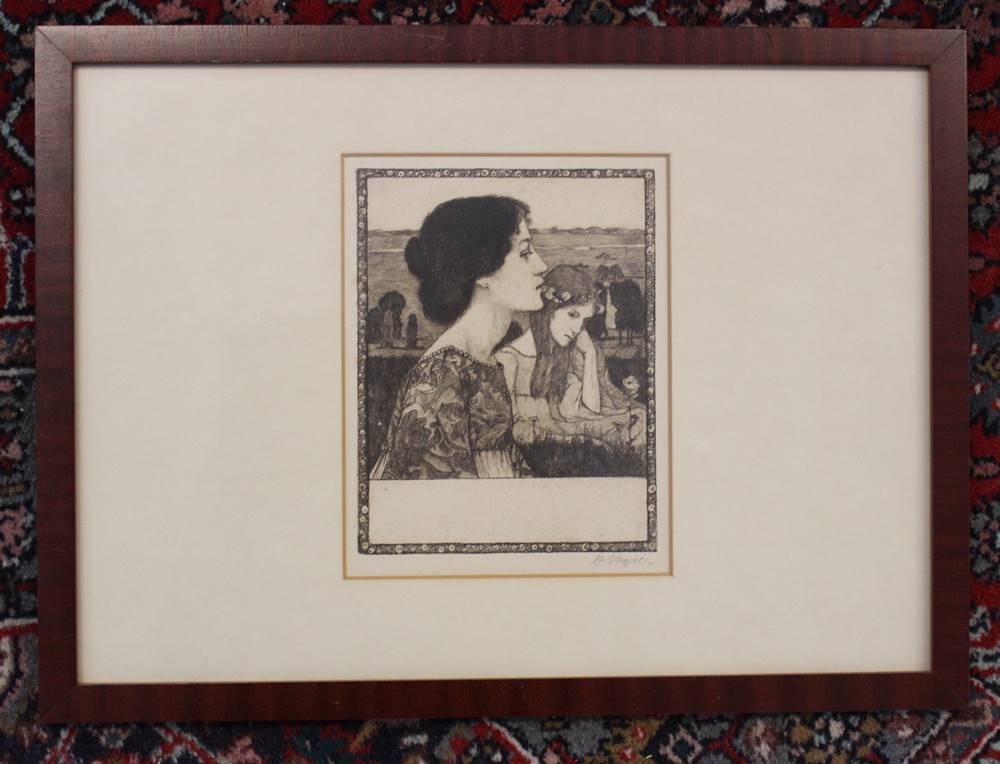 Heinrich Vogeler (1872-1942), Radierung, Titel "Sommerabend", ger./Glas, RG 28 x 38cm [1]