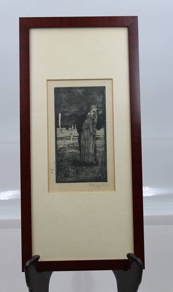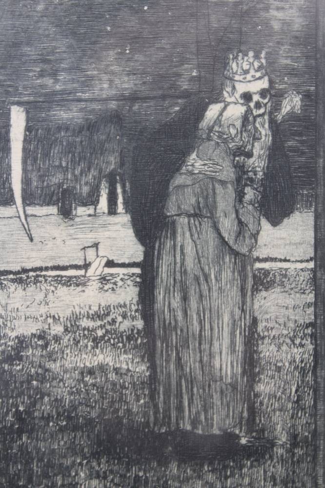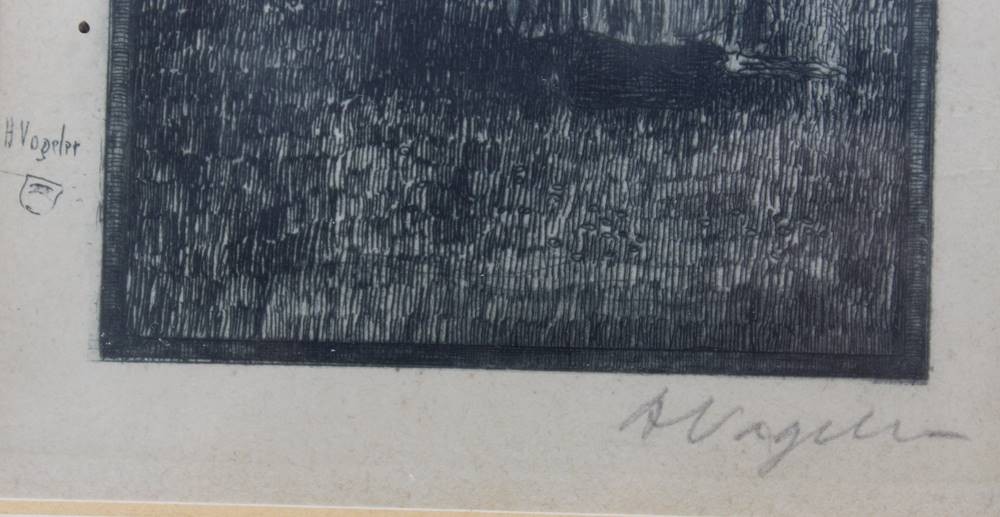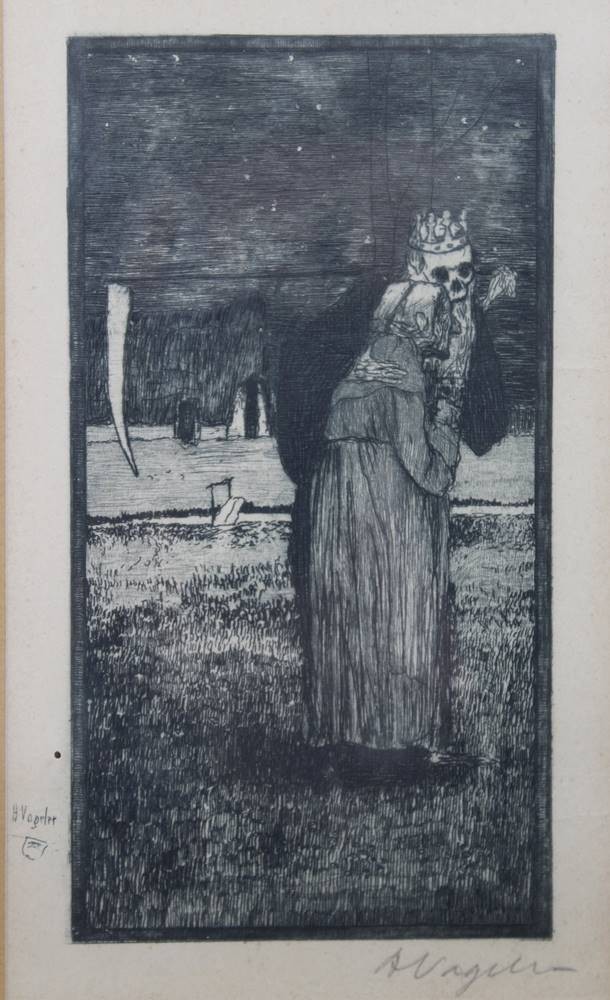 Heinrich Vogeler (1872-1942), Radierung, Titel "Tod und Alte", ger./Glas, RG 38 x 18cm [1]