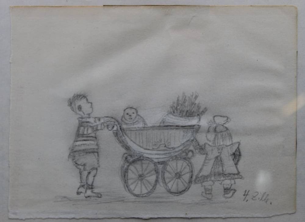 Heinrich Zille (1858-1929) wohl Bleistiftskizze, Kinder mit Kinderwagen, r.u. signiert, ger./Glas, RG 25,5 x 31,5cm