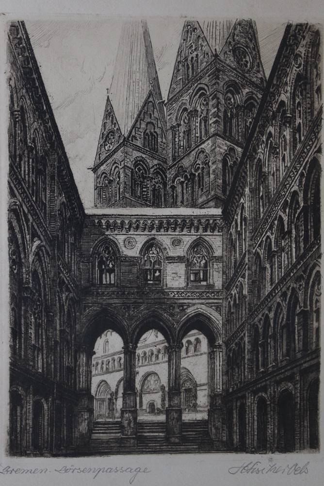 Helma FISCHER-OELS (1860-1930), Radierung, Bremer Börsenpassage, ger./Glas, RG 28,5 x 21,5cm [1]