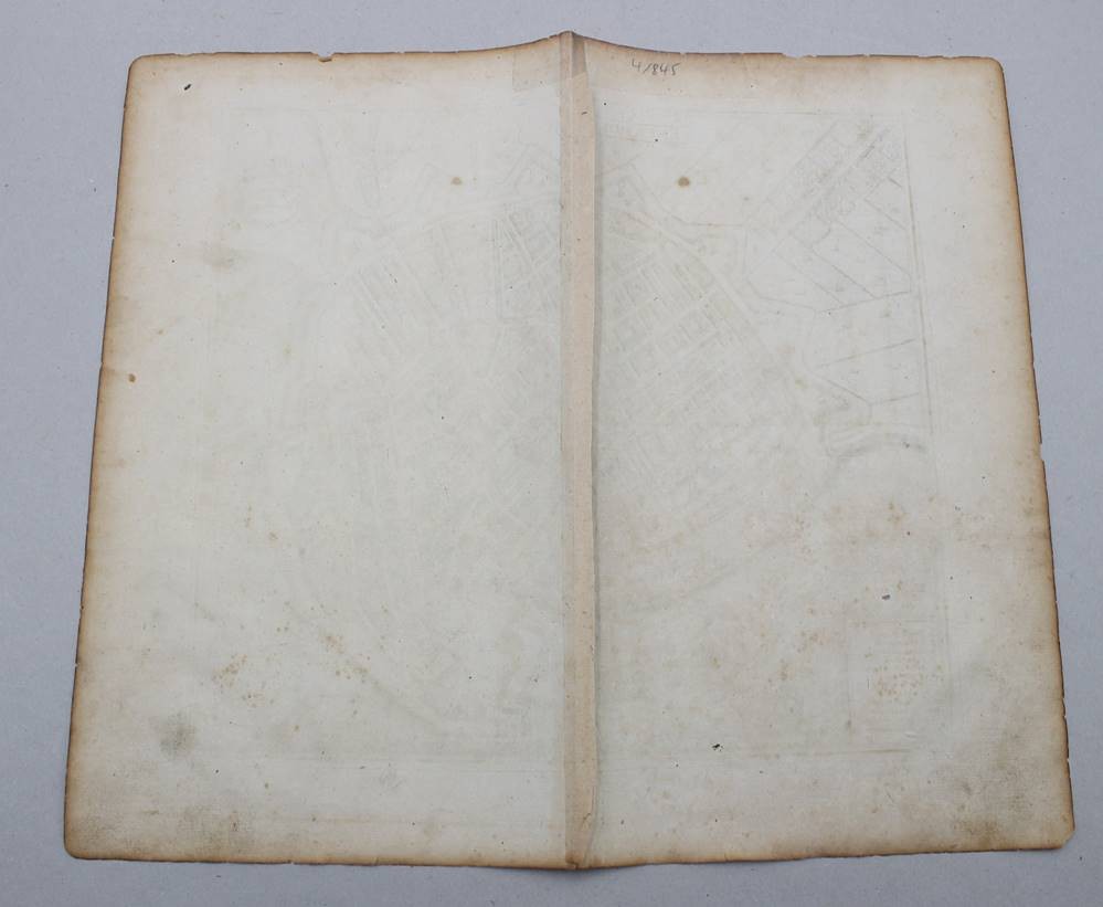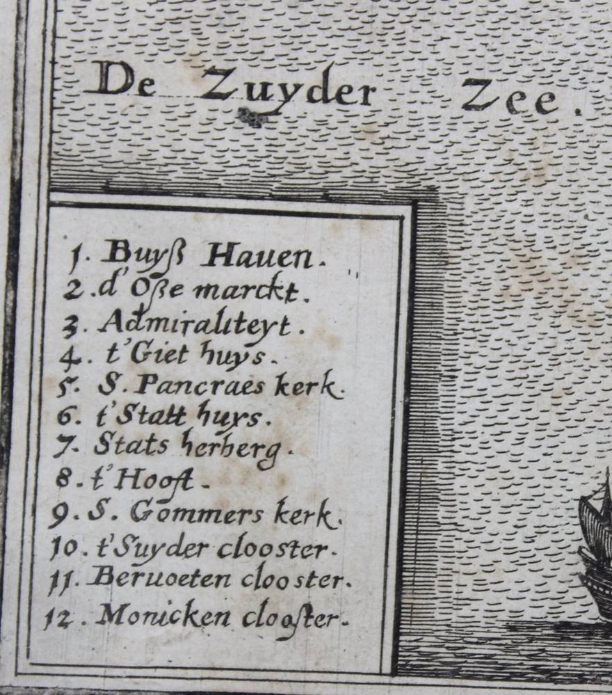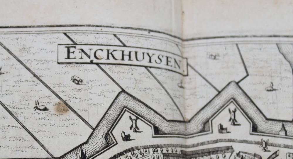 historische Stadtansicht von Enkhuizen ( Enckhuysen) in den Niederlanden, 18. Jhd., mittig Falz, ungerahmt, BG 30,5 x 36cm [1]