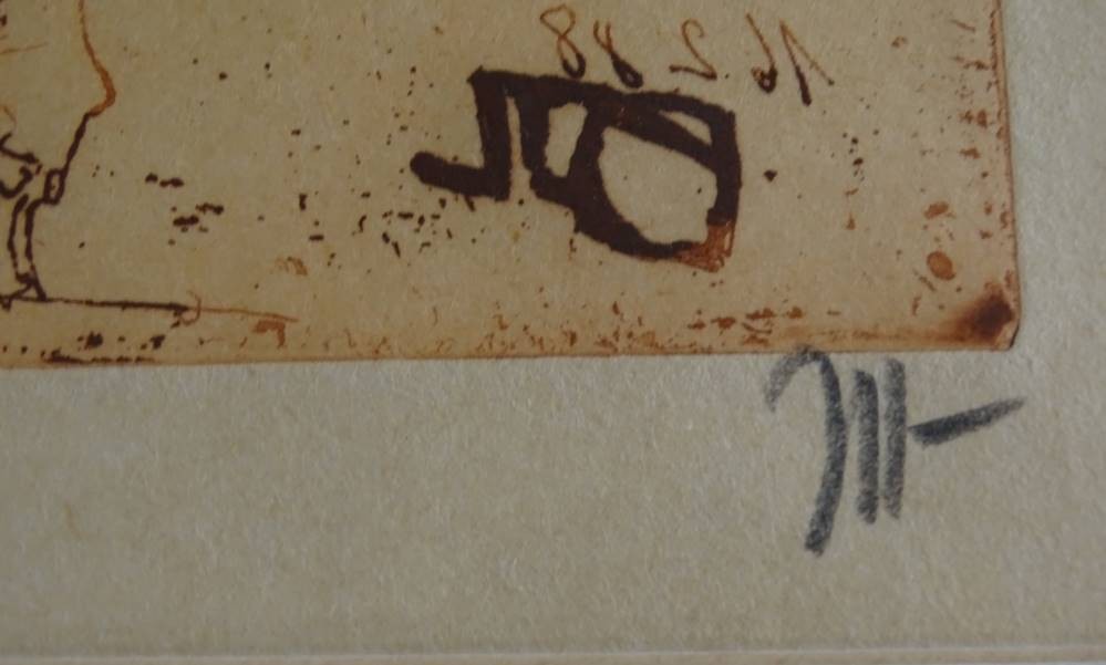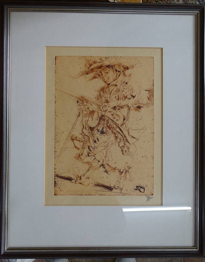 Horst Janssen (1929-1995) "Langenhorner Jubilate I-Musketier" orig. Radierung, signiert, gut ger/Glas, RG 53x43 cm [1]