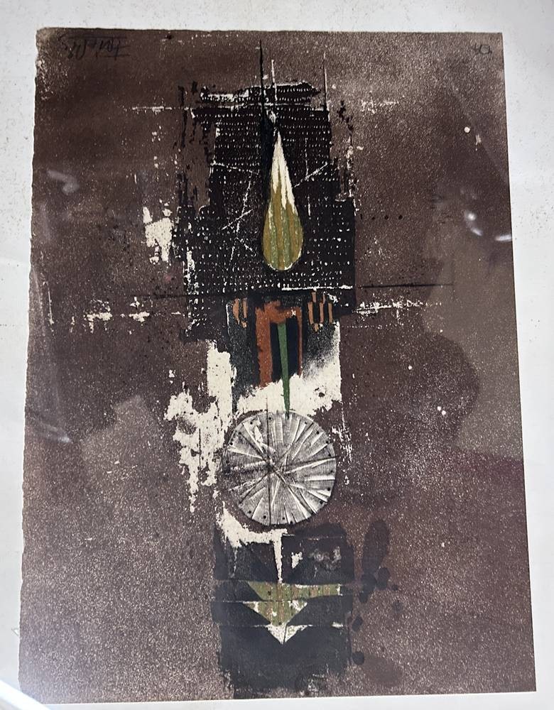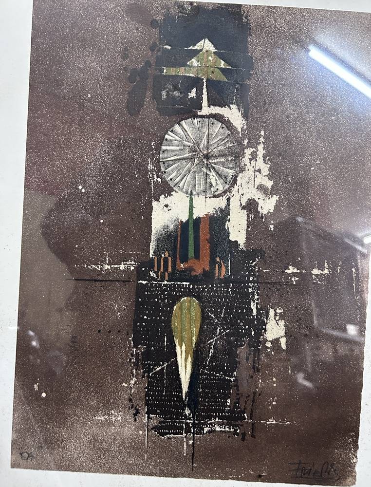 Johnny FRIEDLAENDER (1912-1992) "Komposition III", ger/Glas, RG 60x50 cm , in Platte signiert [1]