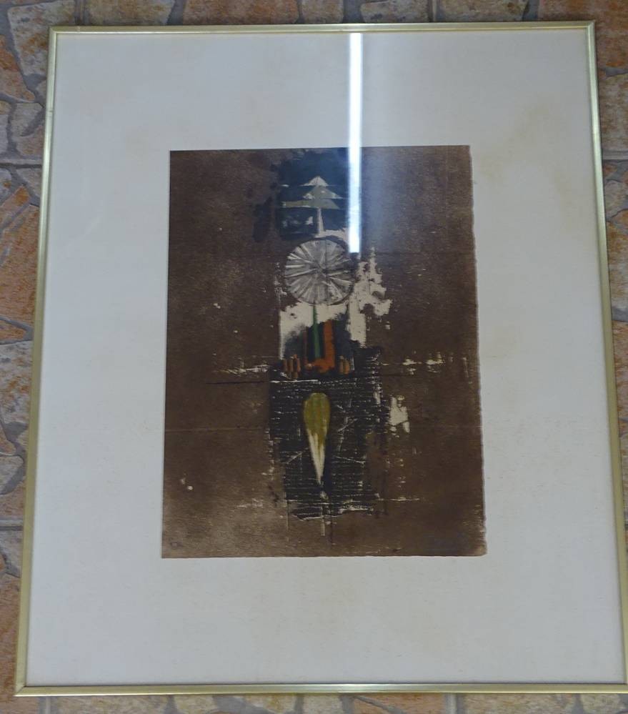 Johnny FRIEDLAENDER (1912-1992) "Komposition III", ger/Glas, RG 60x50 cm , in Platte signiert