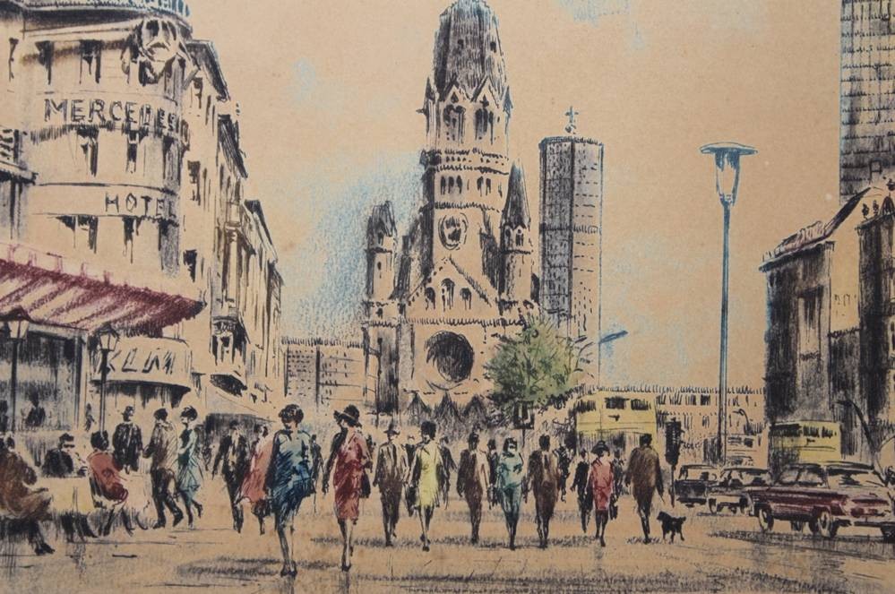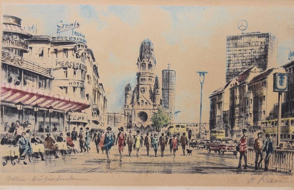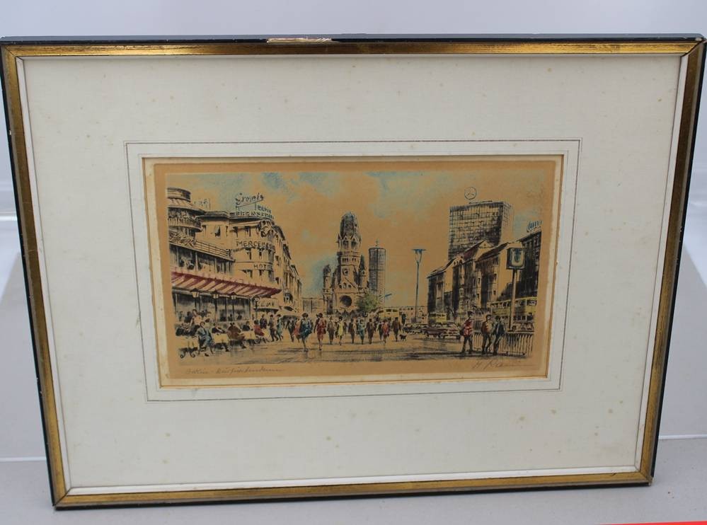 Kurt PALLMANN (1886-1952), Berlin Kurfürstendamm,. Farbradierung, Blatt vergilbt, gerahmt, RG 36 x 47cm, Rahmen beschädigt [1]