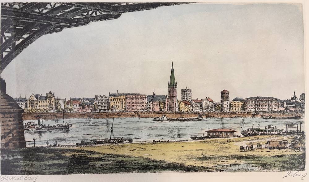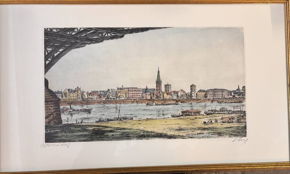 Lenz "Düsseldorf" gr. Farbradierung, ger/gLAS, RG 36x64 cm [1]