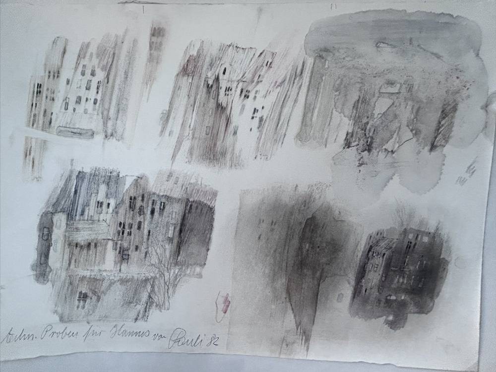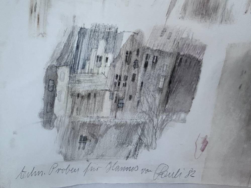 Lithografie, bezeichnet "technische Proben für Hannes Henseleit von Pauli 1982" BG 24x34 cm [1]