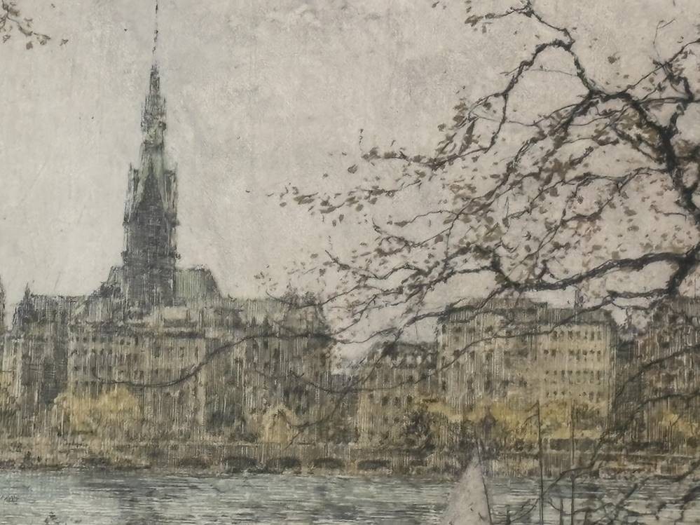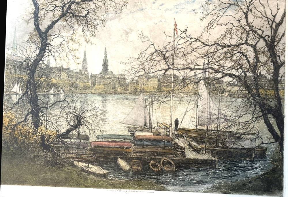 Luigi Kasimir (1881-1962), "Hamburg, Binnenalster". Aquatinta Radierung, gut ger/Glas, RG 69x85 cm [1]