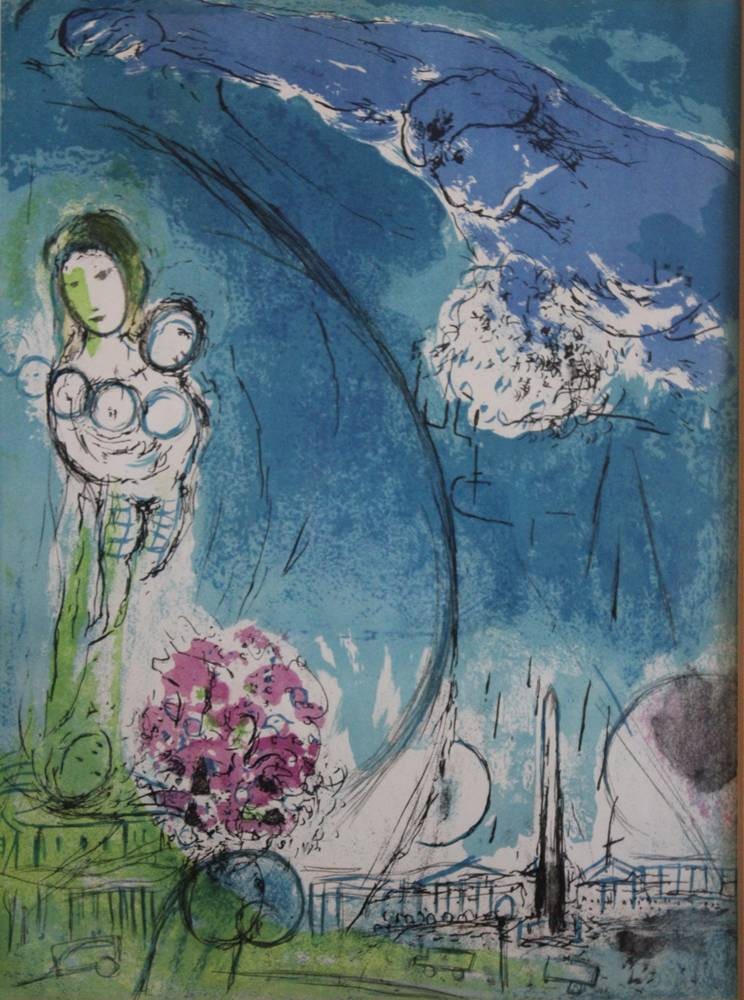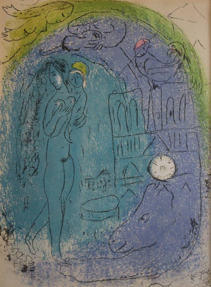 Marc Chagall (1887-1985), 2x Farblithografien, unsigniert, je grahmt/Glas, RG 63,5 x 52,5cm [1]