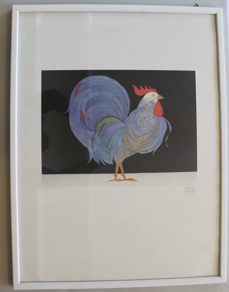 Maria Reese, gr. Kunstdruck, Hahn, handsigniert, gerahmt/Glas, RG 83 x 63cm [1]